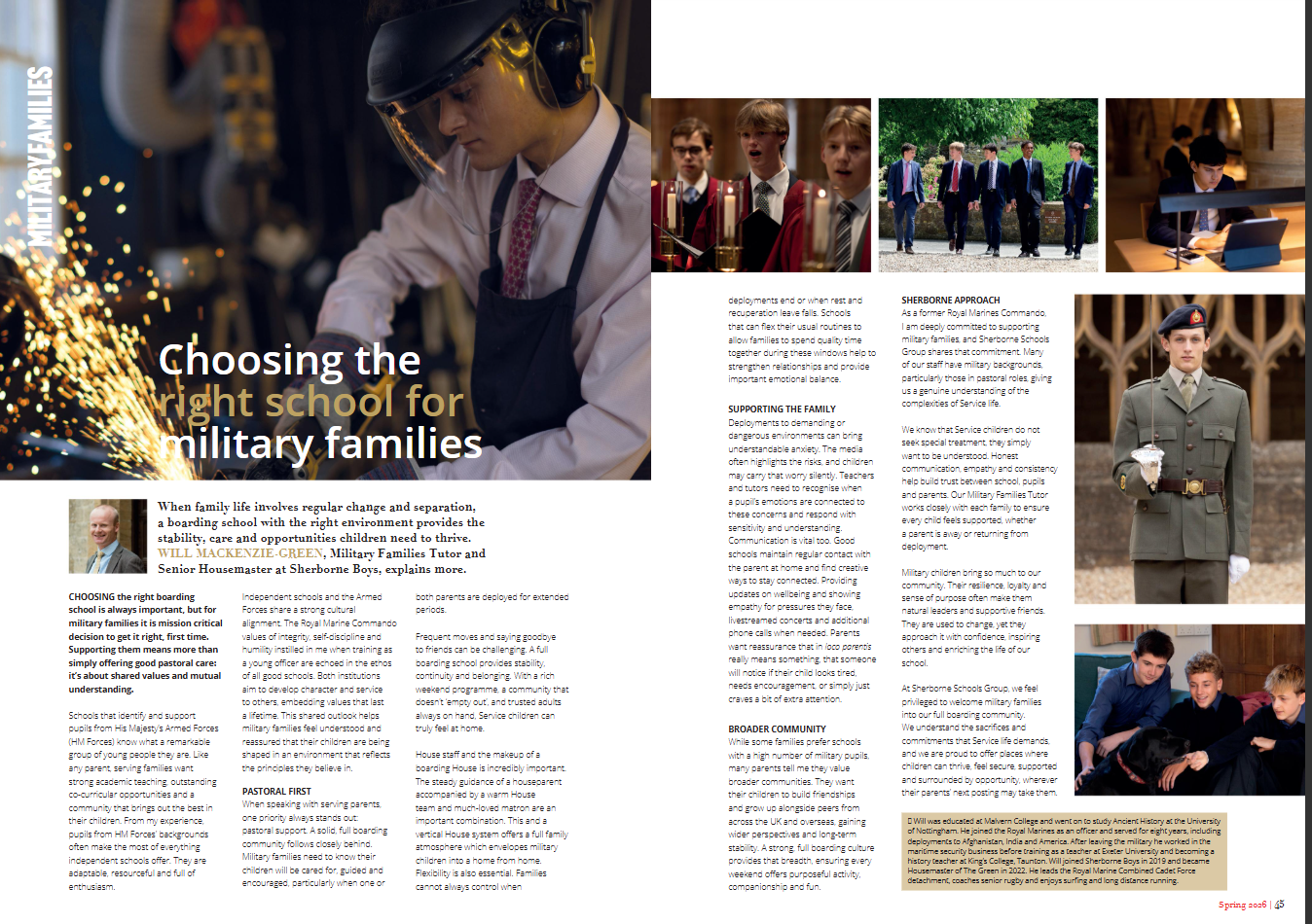 As a former Royal Marines Commando, I am deeply committed to supporting military families, and Sherborne Schools Group (SSG) shares that commitment. Many of our staff have military backgrounds, particularly in pastoral roles, giving us a genuine understanding of the complexities of Service life.