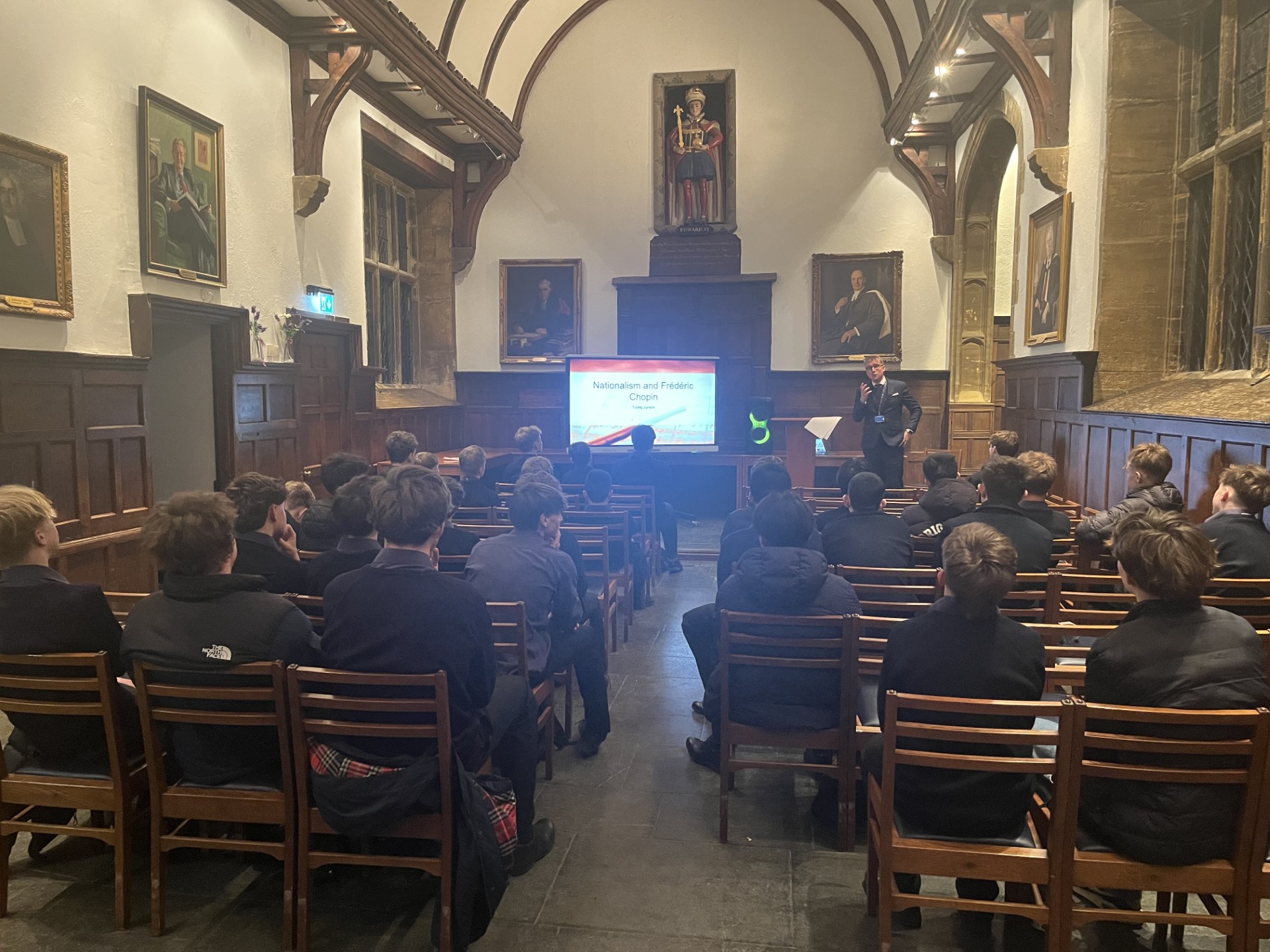 Last Friday, invited Fourth Form and Fifth Form HAP were treated to an engaging and thought-provoking lecture by history teacher Mr Herod on the relationship between 19th-century nationalism and music. With reference to the life and music of Chopin, the talk explored how composers and musical movements both reflected and shaped emerging national identities across Europe. The boys so enjoyed listening to Chopin’s music with greater understanding of the context of its creation.